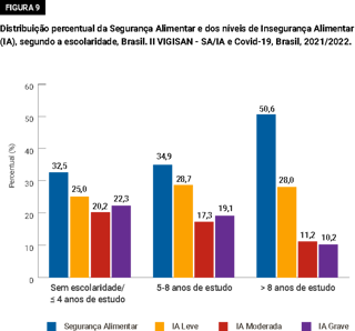 O estudo da Rede PENSSAN (Rede Brasileira de Pesquisa em Soberania e Segurança Alimentar e Nutricional) mostra a relação entre escolaridade e nível de insegurança alimentar. Os resultados demonstram que, entre as famílias mais afetadas pela carência de alimentos, na maior parte os responsáveis pela renda possuem menos de 4 anos de estudo (22,3%), seguidas por aquelas com pessoas que possuem entre 5 e 8 anos de estudo (19,1%) – ou seja, não completaram os dois ciclos do ensino básico.